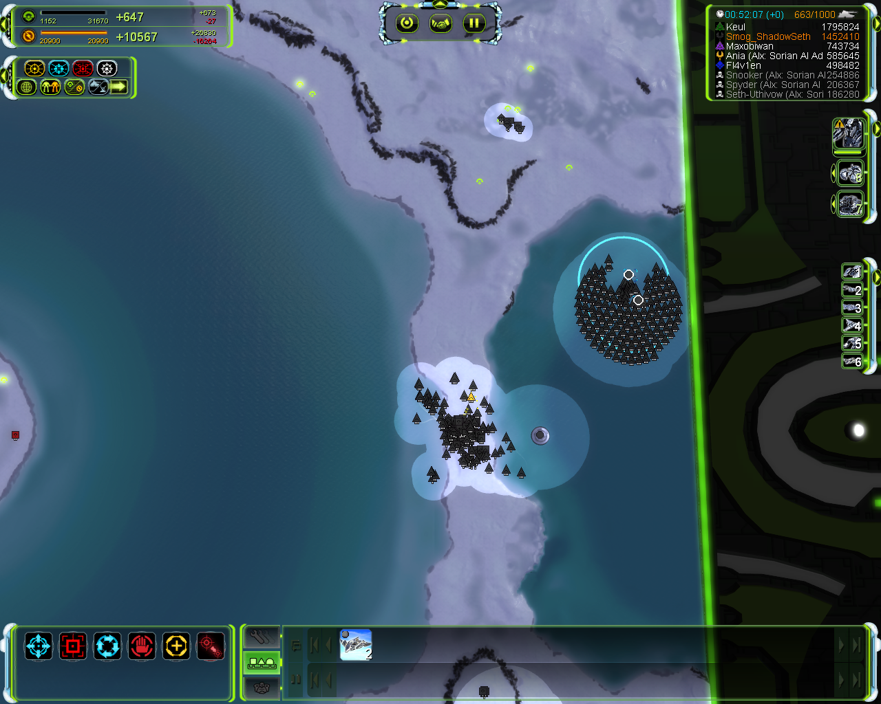 Pendant ce temps là, la monkeylord, furtive, rapide, qui fut achevée alors que le Czar n'en étais même pas à 50%, sors tranquillement de l'eau sur le flan de la base Aeon.